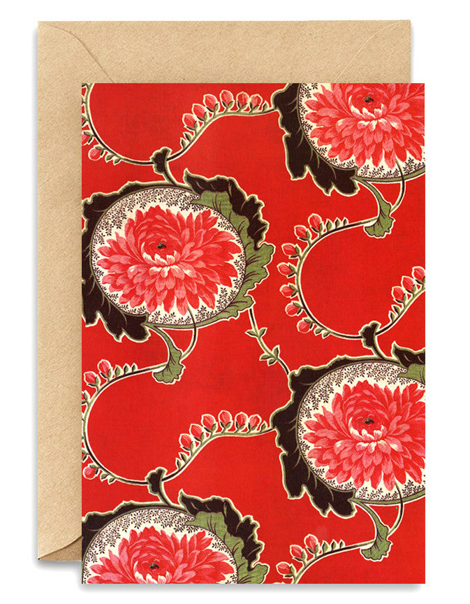 A gicleé fine art print in itself, this 5" x 7" greeting card doubles as a framable gift of a Russian textile print. Craft paper envelope, blank inside. Comes in a box set of 12 card-envelope sets, individually wrapped in acid-free cello bags. The box can be sold as a complete set in itself or broken up for display.